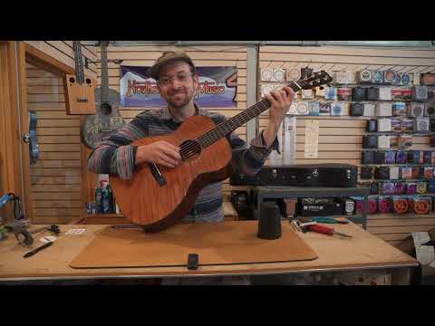 This Huss & Dalton Custom OM is a beautiful guitar with classic, traditional lines. It features a Curly Redwood (Sequoia sempervirens) top and Mahogany (Swietenia macrophylla) back and sides. It is enhanced with Gotoh Gold gears with the H&D logo and Ebony buttons. It also features an Ebony peghead overlay and heel-cap. All other specs are standard to the model. W/ TKL tweed hard shell case.