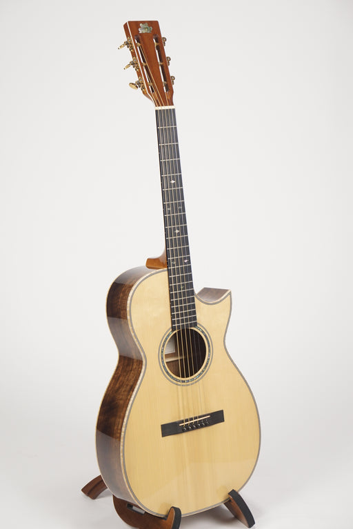 Adirondack Spruce is a top choice guitar soundboard upgrade. We are proud to stock a robust selection of Adirondack Spruce top guitars in a variety of body shapes and sizes. Tonally Adirondack tends to have a meaty mid range and the stiffness to be driven aggressively with a pick without distortion. This is why it is often a top choice for flat picking bluegrass players.