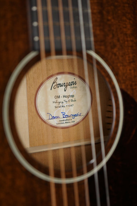 This great-looking, great sounding, All-Mahogany OM offers rich, woody and velvety tonalities with bell-like highs and clear balanced lows. It has the killer sustain and foundational presence that you expect from every Bourgeois guitar.  W/deluxe hard shell case