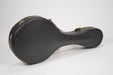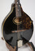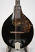 This approximately 100 year old Gibson mandolin is absolutely wonderful! Musical instruments, when well cared for only get better with age. This instrument has a sweet, rich and musical tone that simply envelops you and leads you down a mysterious path of musical exploration. The fine Mahogany on the back and sides is warm sounding and voices the crisp mandolin tone in a nice round way. This one has a fine black finish that is accented with white binding. The original bridge is in the case, also in the case is the tiny key that goes with the mandolin. They put a new bridge on the mandolin we guess because the original cracked down the middle and was glued back together, but they kept that original bridge in the case compartment. The case appears original, as-well as that beautiful Gibson tail piece. This thing really has a majestic sound, plays nicely and is easy on the eyes.